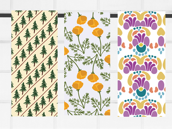 These patterns will be printed locally and sustainably on 100% cotton canvas and made into 2 standard 16″ x 28″ towels. 1 order contains 2 towels, 2 orders have 4 towels, 3 orders have 6 towels, and so on.