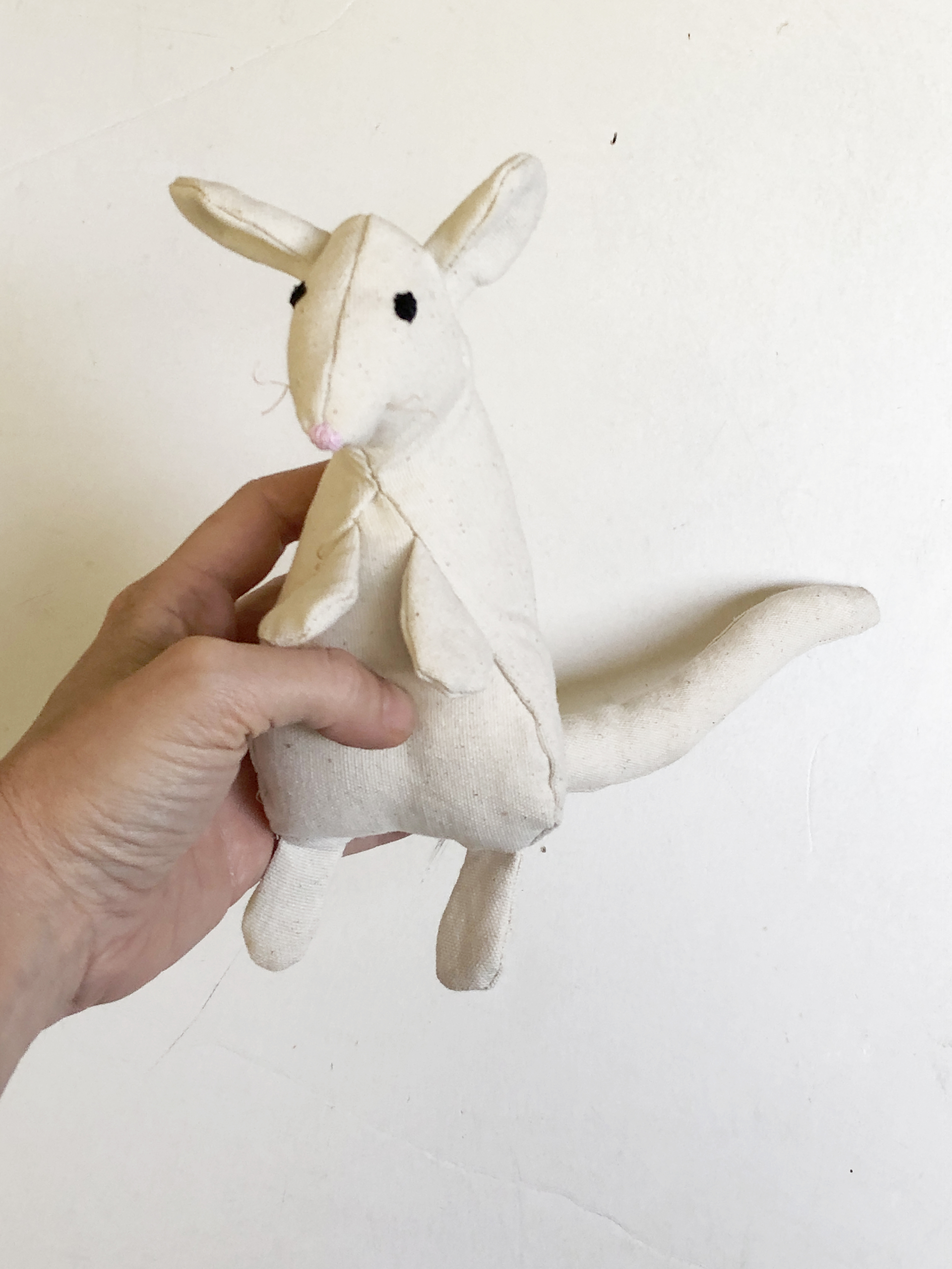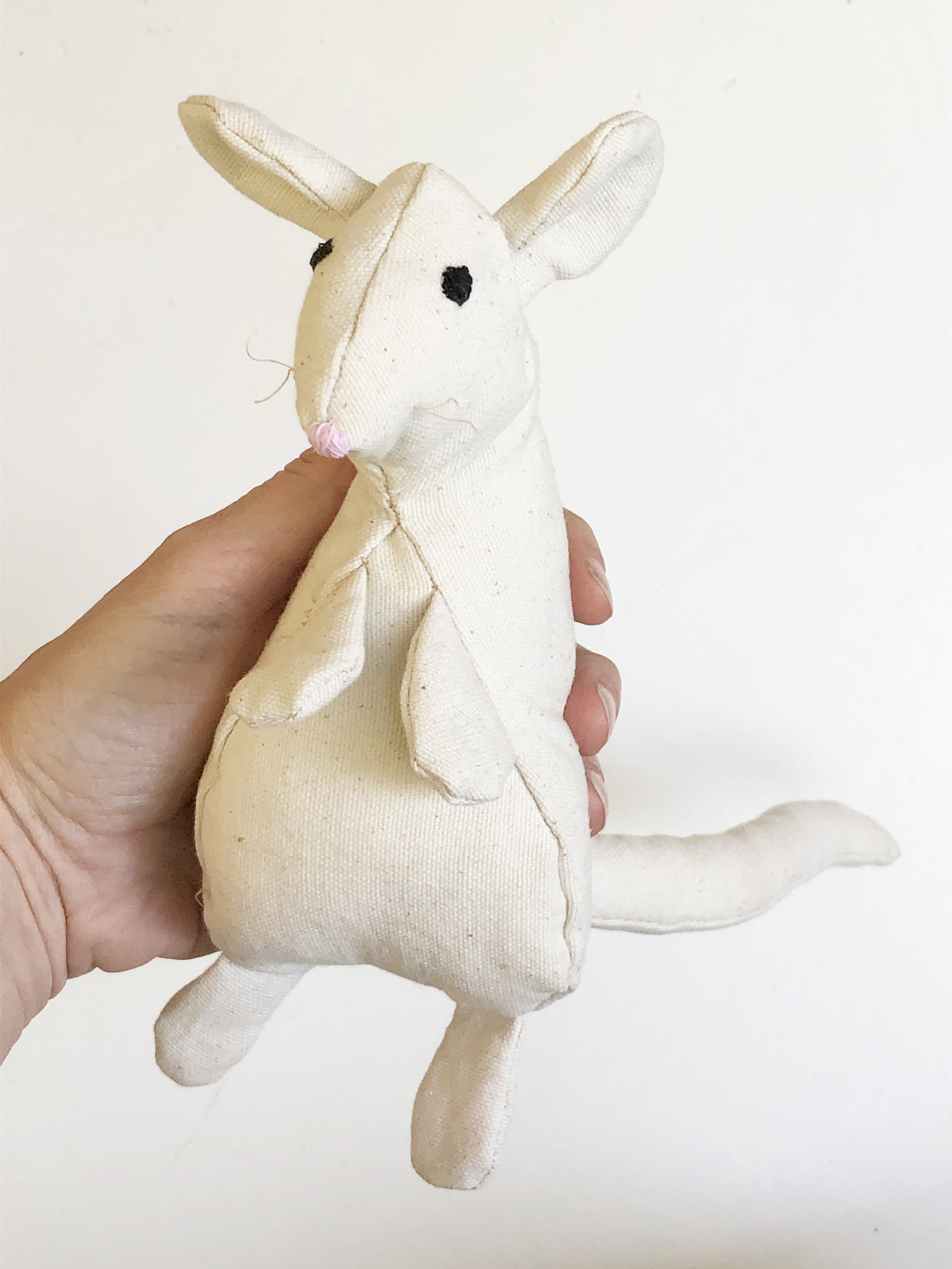 I created this rat plush pattern to capture the way pet rats stand. This pattern works well with non stretch fabrics like cotton, canvas and linen. It looks really nice with flannel, but I’ve also had success with not too stretchy minky material. Others have had success using felt.